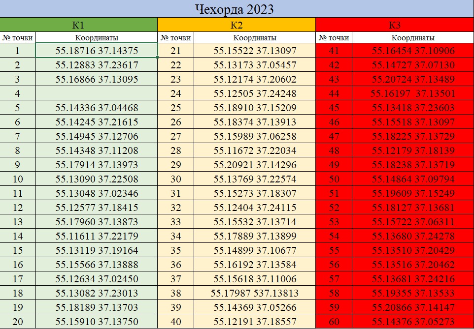 Точки для соревнований выложены