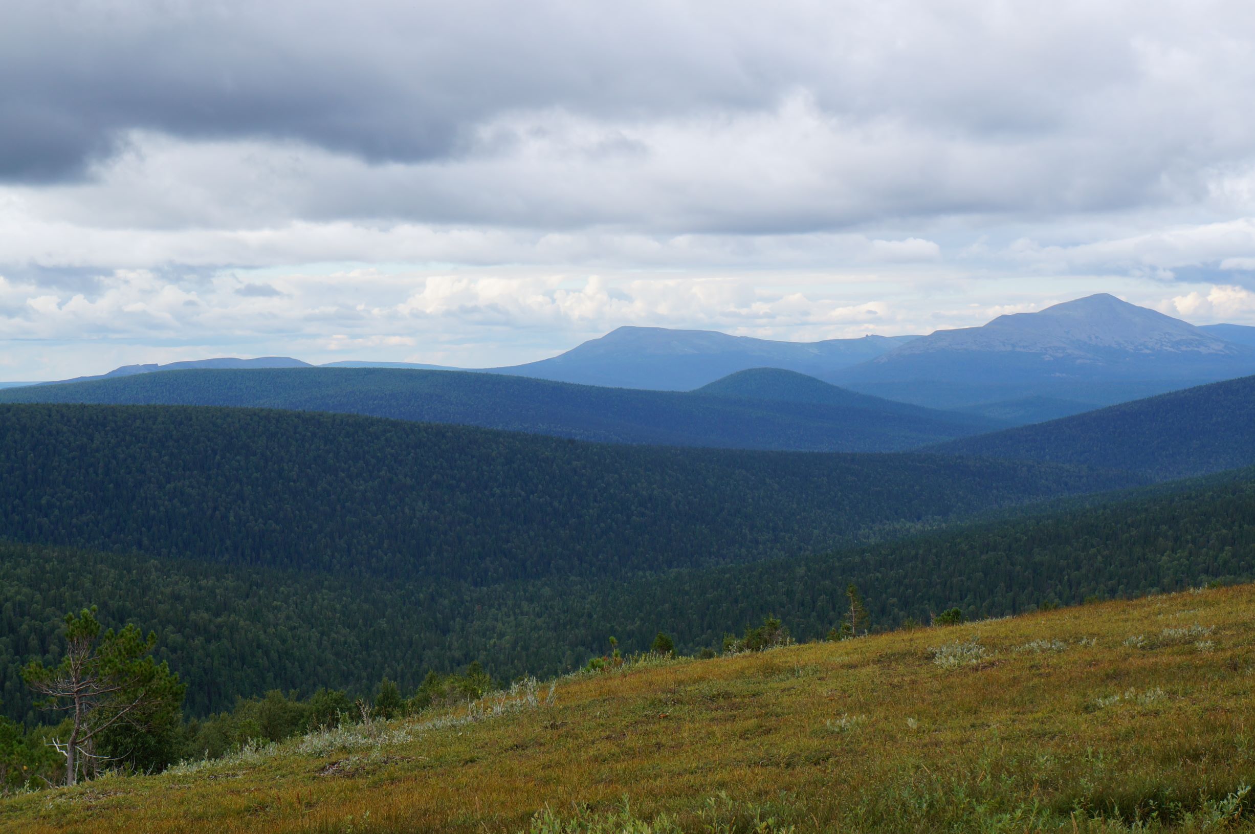 Стоило перемахнуть через гору, как нам встретилась группа из двух Патрулей и Тойоты. Остановились пообщаться. Народ ехал с плато. Доехать то они до него доехали, разрешение на посещение имели, а вот попасть так и не попали – шел сильный дождь и прогулку пришлось отменить. На обратном пути, на курумниках, у еще одной машины из их группы – Сотого Крузака, завернуло кардан и его пришлось бросить. Народ скептически смотрел на Антохин прицеп, уверял, что с ним там вообще не проехать, и вообще лучше туда не соваться – там холодно и плохая дорога… А еще, они видели двух белочек…