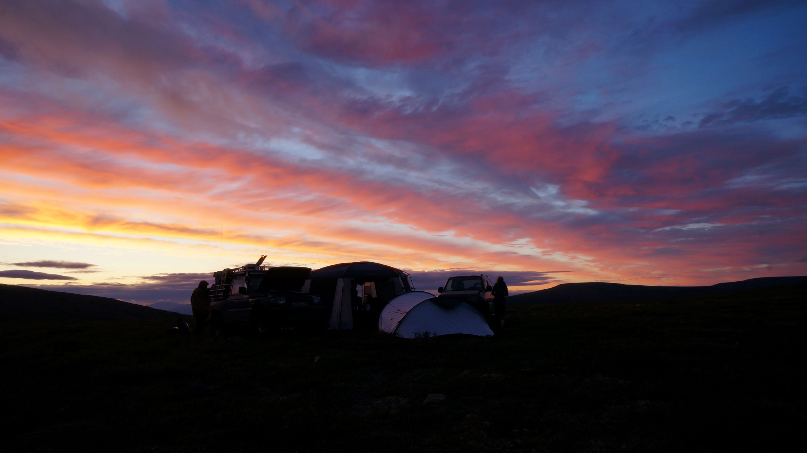 Остановившись попить чайку, Антоха впервые высказал робкую надежду на то, что мы можем успеть сегодня сходить на плато, если скорость передвижения не упадет и мы приедем часикам к трем… МаньПуПунер на закате…