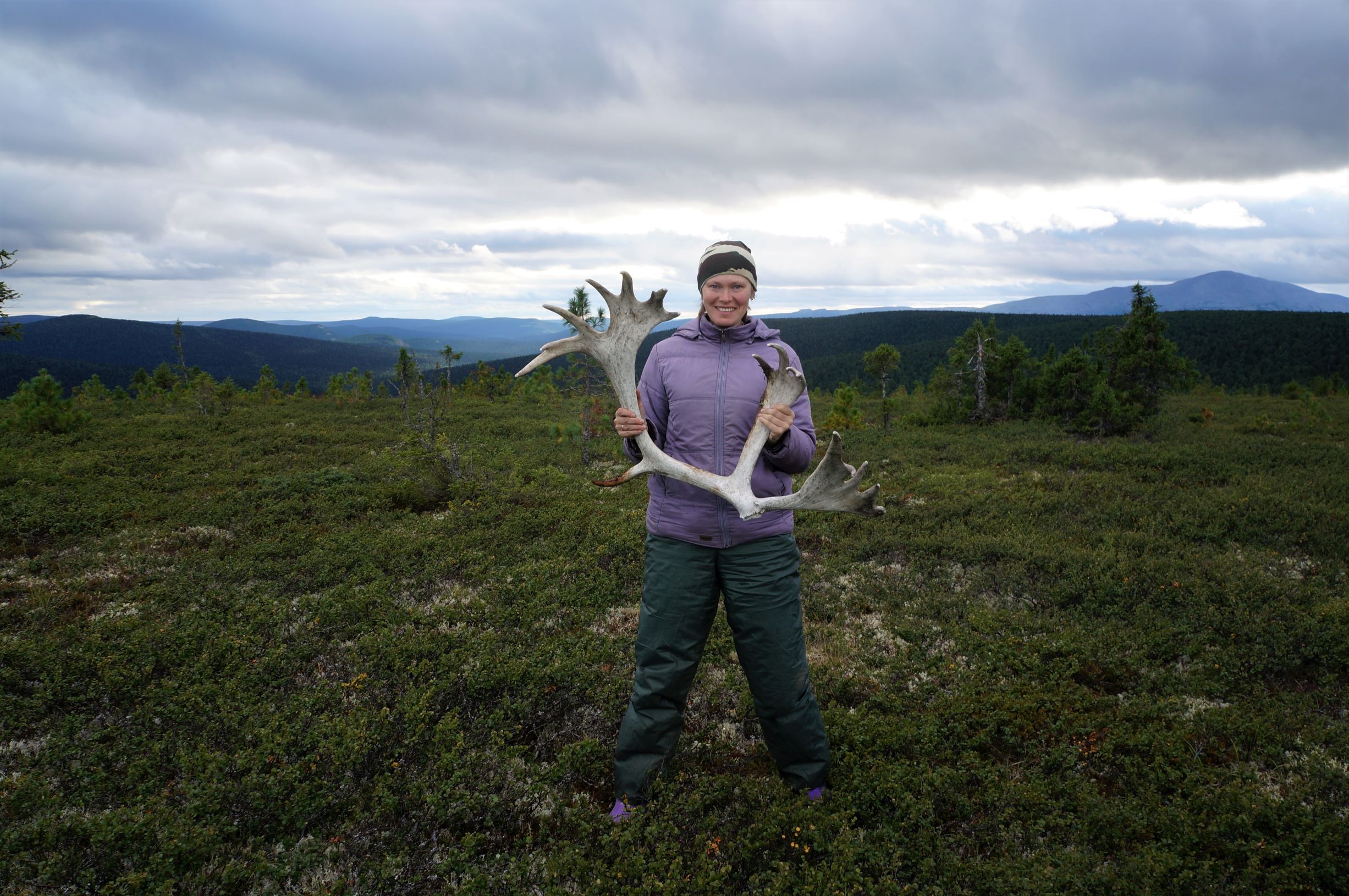 Женя с Серегой собрав нехитрые пожитки и немного еды в дорогу, тронулись в путь, а мы занялись переездом. Между делом из своего модуля вышел наш сосед-пешик, подивился количеству наших вещей, а потом с восхищением заметил: «О, у вас даже молоко есть!» Конечно мы спросили, не хочет, ли он молочка. «Не откажусь», ответил он. Так началось наше знакомство с Игорем. Но нам нужно было переезжать, поэтому мы отвязали Светкин Дракон от шатра и перегнали поближе к домику. В это время подул ветерок, и шатер, который оставался привязанным только к Шмыге, развернуло ножками вверх. Когда я это увидела, бедный Игорь пытался его поймать в одиночку, не издавая при этом ни звука. Поэтому звук пришлось издать мне. На него сбежались все, кто остался в лагере и мы, поймав шатер, стали подсчитывать урон. А отъехавший совсем недалеко Крепыш, передавал в это время по рации, что наблюдает стадо оленей, в одиннадцать голов…
