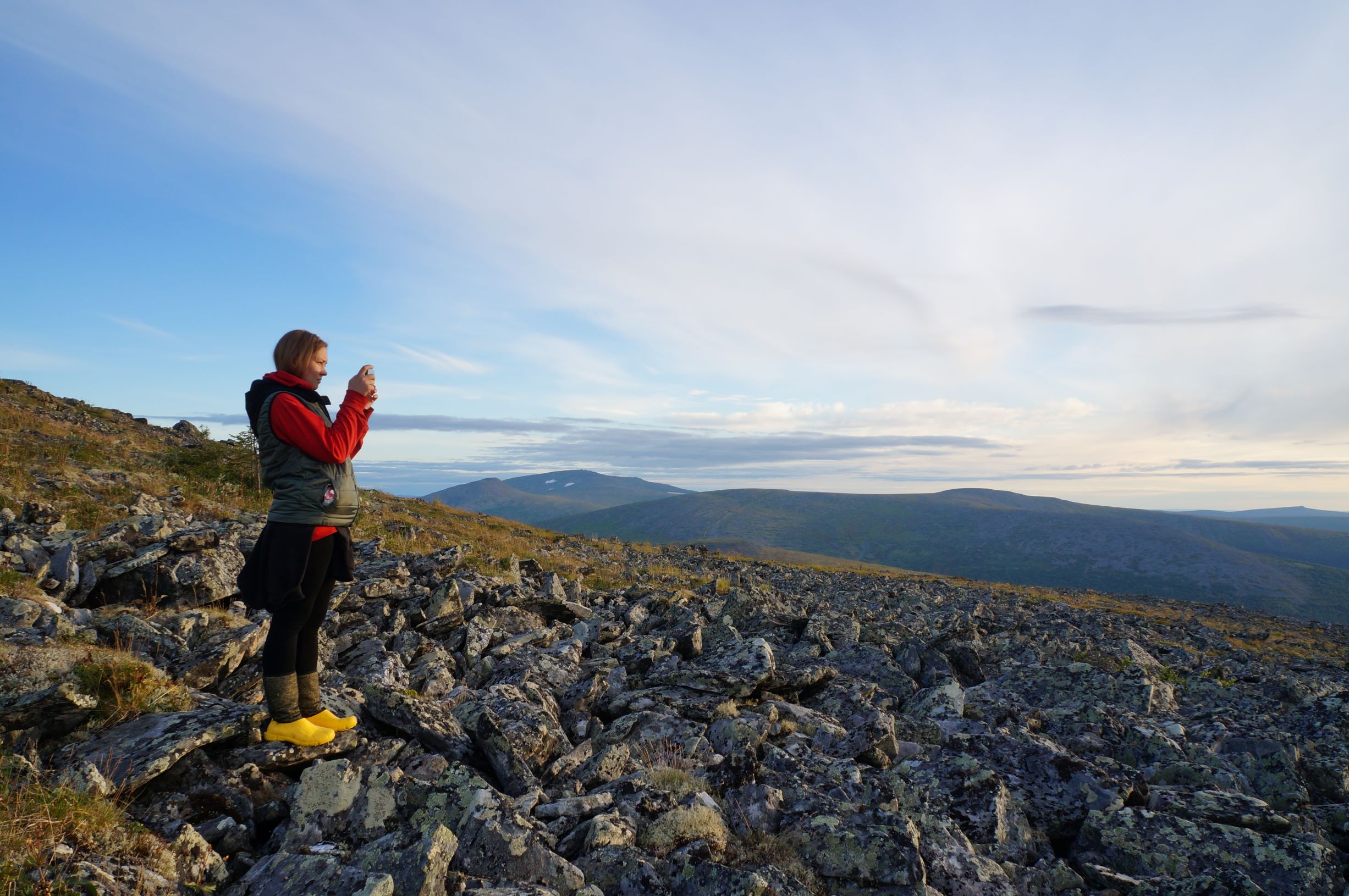 К вечеру мы со Светкой отправились гулять на соседнюю гору. Закат был настолько восхитительным, что, несмотря на то, что мы знали, что нас будут ругать за опоздание, мы никак не могли заставить себя вернуться. Рации с собой у нас не было, поэтому нам пришлось махать руками, обозначая себя. Нас даже увидели, но Леха все равно пошел нас встречать.